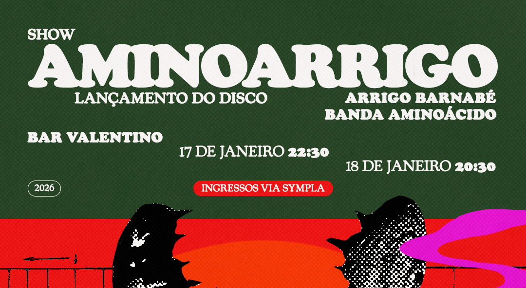 Nos dias 17 e 18 de janeiro (sábado e domingo), Arrigo Barnabé se junta à banda Aminoácido para 2 shows de lançamento do LP Aminoarrigo, no Bar Valentino, em Londrina, a partir das 22h30 e 20h30, respectivamente. O álbum, produzido por Luciano Galbiati, no estúdio Fábrika, durante a passagem de Barnabé por sua cidade natal para se apresentar ao lado do sexteto no Festival circulasons, em 2022, será lançado oficialmente neste show pelo selo fonográfico Vermelho Discos.