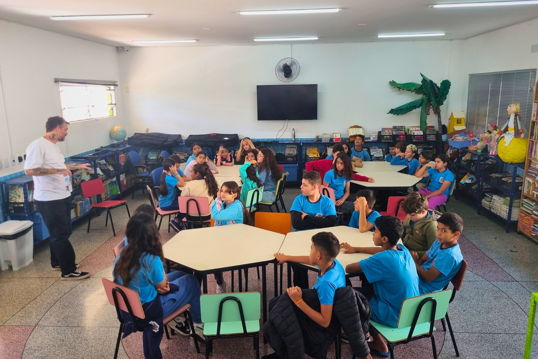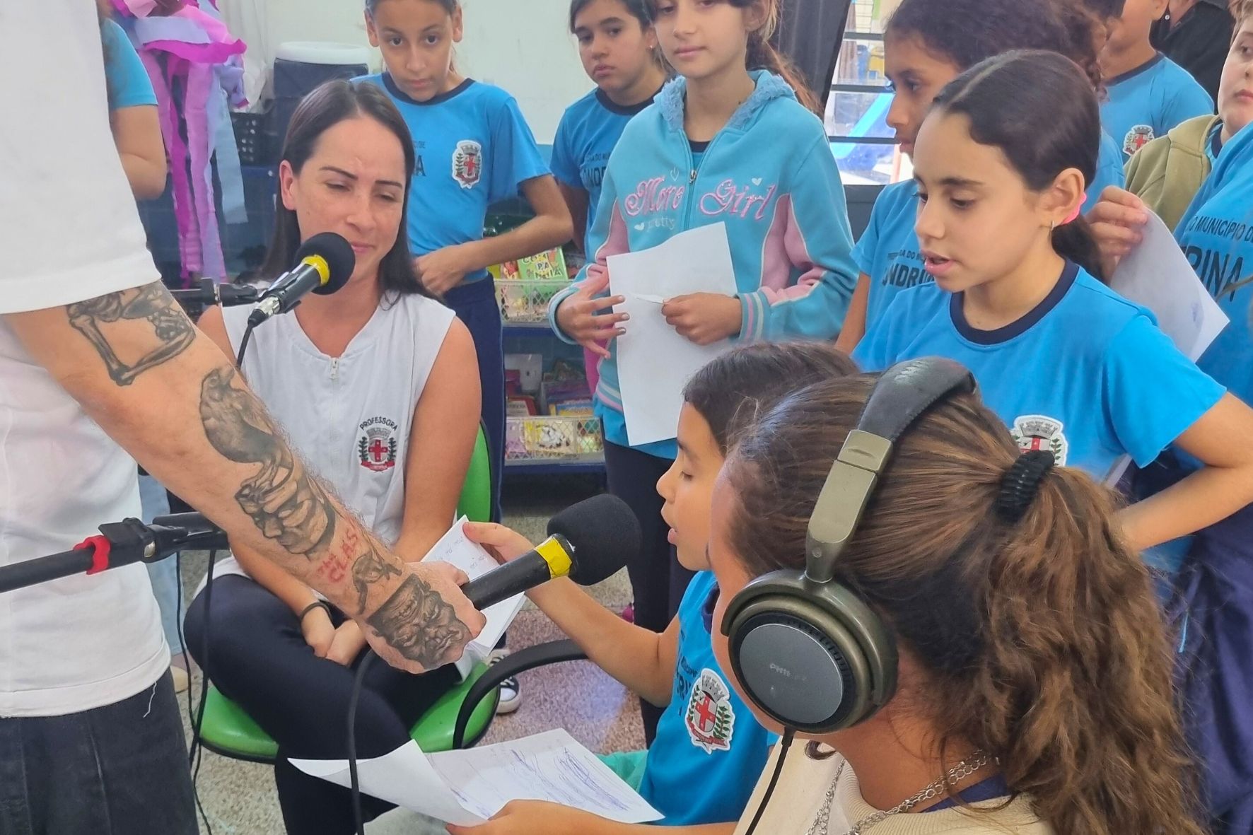 Durante a oficina de produção, a turma do quinto ano, composta por aproximadamente 33 alunos, teve a chance de aprender de forma prática através de um jogo de cartas divertido que simula a criação de uma rádio. Os temas dos podcasts foram selecionados pelos próprios alunos. Na parte técnica e prática, foram abordados aspectos como locução, entrevistas, vinhetas e jingles, além de ensinar o processo de planejamento, gravação e veiculação de projetos de rádio.