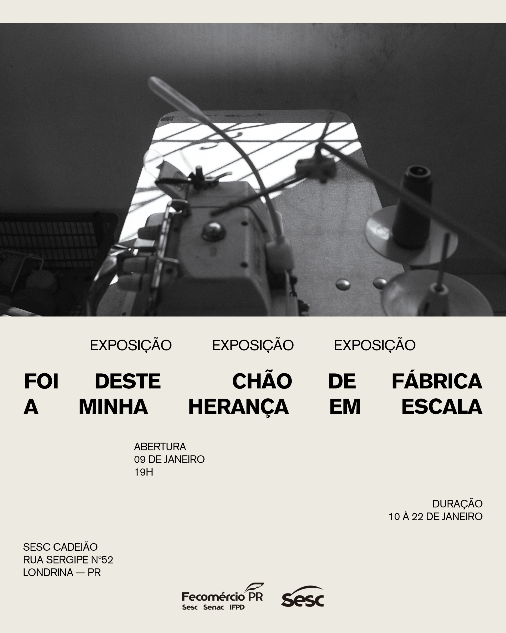 O evento celebra a estreia de Frizo em Londrina com uma exposição individual que reúne fotografias e instalações audiovisuais, retratando o cotidiano dos trabalhadores nas pequenas fábricas, serigrafias e bordados da cidade, reconhecida nacionalmente como a Capital do Boné. Este projeto é fruto do edital Arte Sesc, no qual a exposição foi selecionada e contemplada para 2025, e será realizada agora, em janeiro de 2026.
