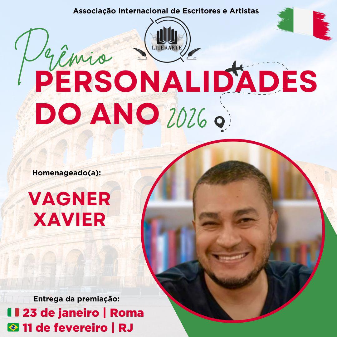 O escritor, poeta, colunista e embaixador cultural Vagner Xavier será homenageado com Prêmio Personalidades do Ano. Este evento celebra a excelência e o impacto de indivíduos em suas respectivas áreas.
